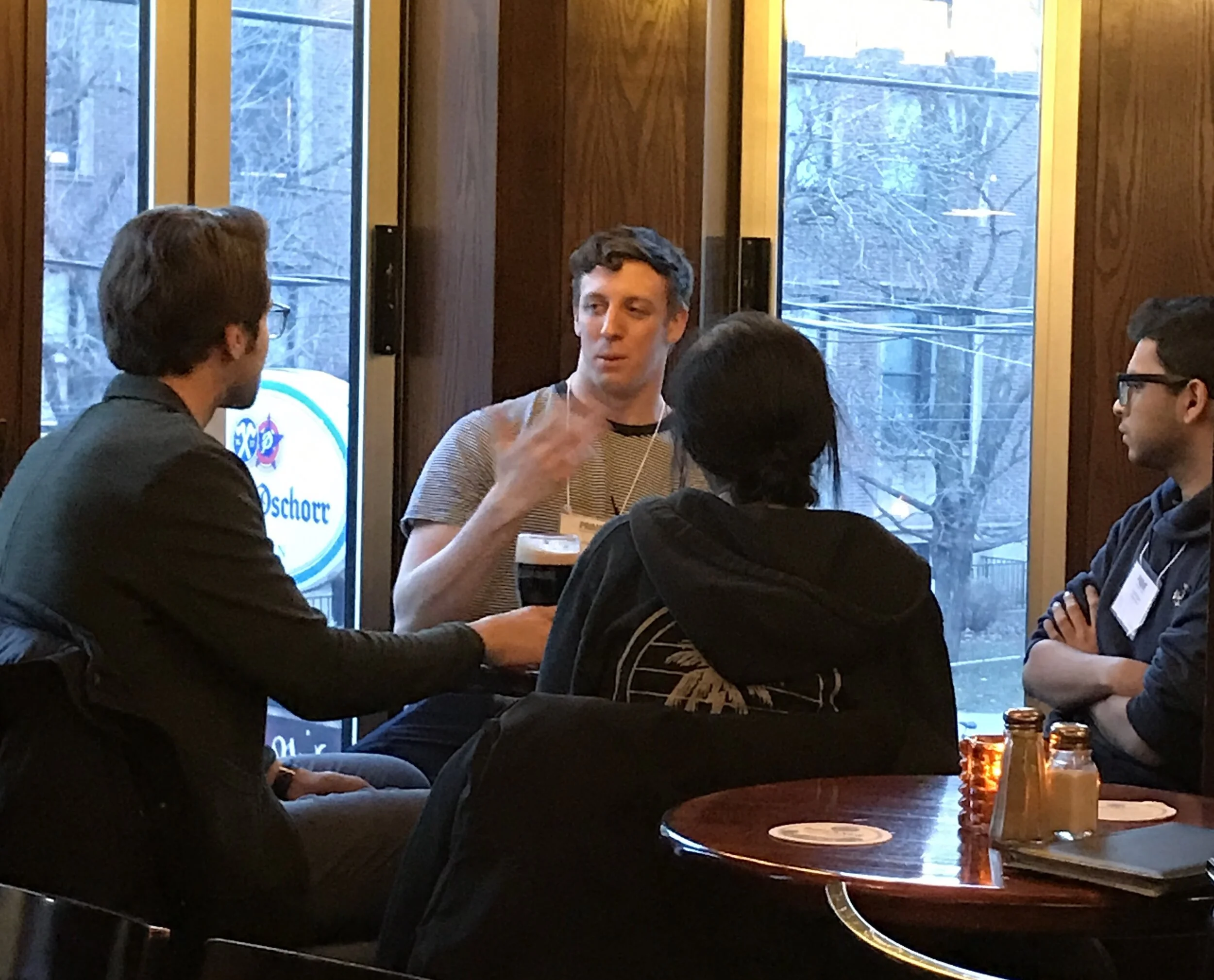Individuals were given 15 minutes at each table to concisely describe their research project and lab expertise and provide thoughts on how a collaborator could help their project, before moving to a new table with a different set of trainees. After several rounds of switching tables and meeting new people, the group was left with food and drinks to continue talking through potential ideas and getting to know others they may not have met during the course of the evening.